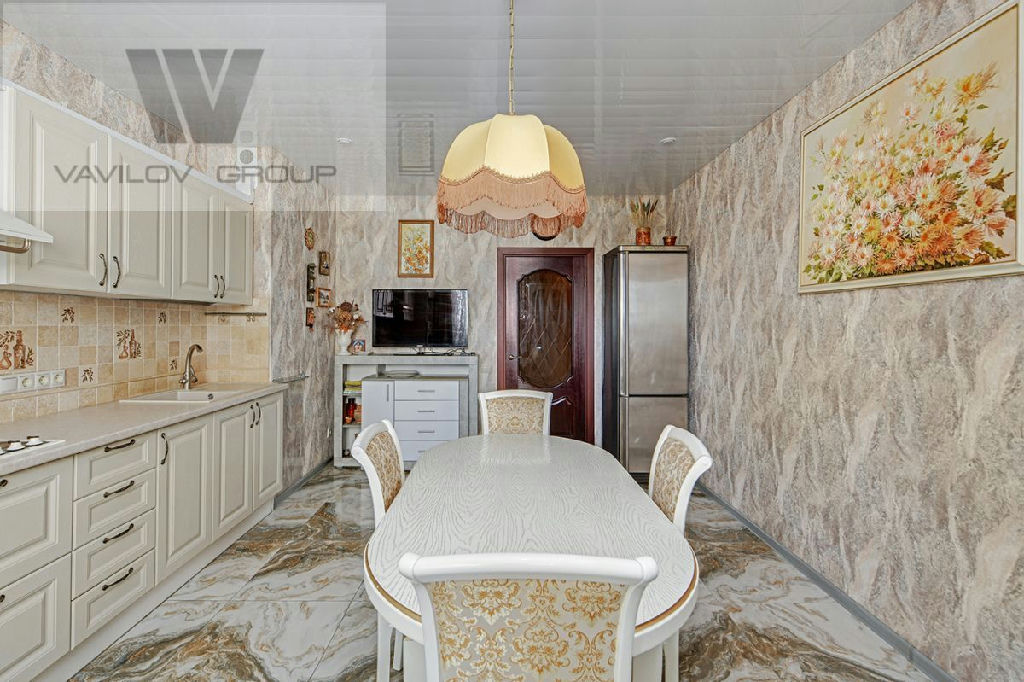 В микрорайоне Южный продается стильная, теплая, большая трехкомнатная квартира с дизайнерским ремонтом площадью 109,20 кв.м. В квартире 3 изолированные комнаты, две площадью 16,5 кв.м., гостиная 24 кв.м. Сердцем чудесной квартиры является просторная кухня в светлых тонах в стиле Прованс с больший абажуром над столом, за которым собирается вся семья. Площадь кухни- 19 кв.м. Уникальный дизайнерский ремонт создает атмосферу уюта и стиля.